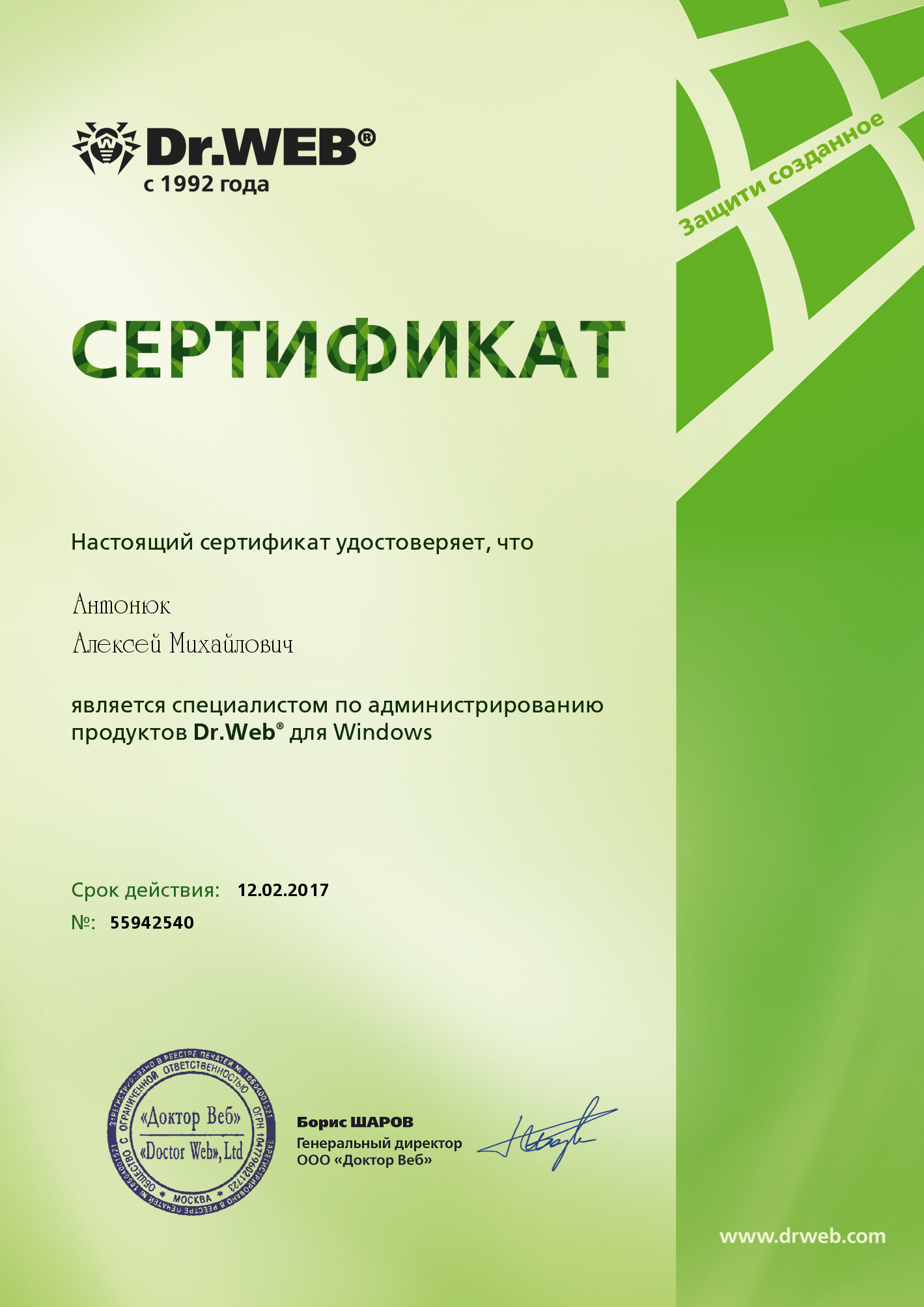 External DWCERT-006DWCERT-006 - Dr.Web CureNet!. Специалист по администрированию Dr.Web CureNet!.